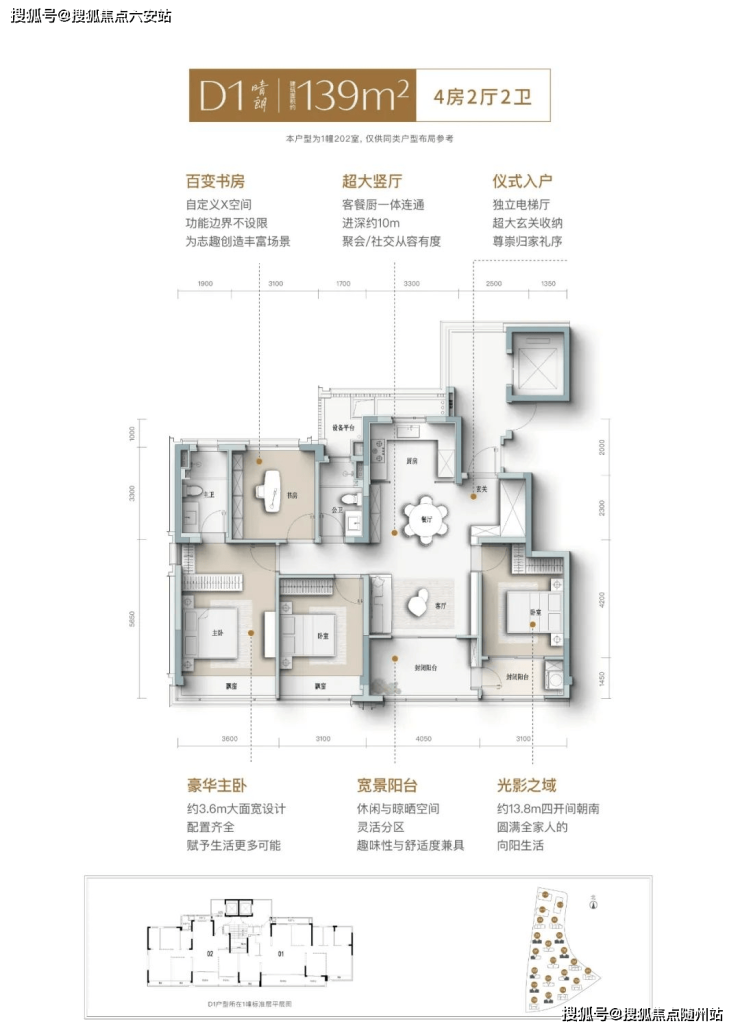 当然,如果还能再加50万预算,可以选择139㎡户型。