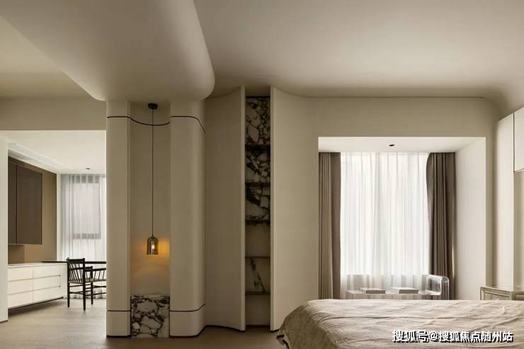 而一体化的餐客厅就成了拥有270度转角采光的类端厅设计,在127㎡的户型里做出了大豪宅的生活体验感。
