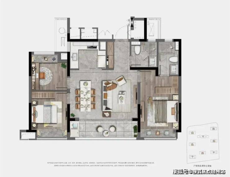 潮映望月府的户型,真是我看过2万+里拓展空间最佳的。我们先来看看收官之作中的明星户型,北向景观餐厅的127㎡。这个户型位于2号楼,北面正对5000余方的中央园林景观。
