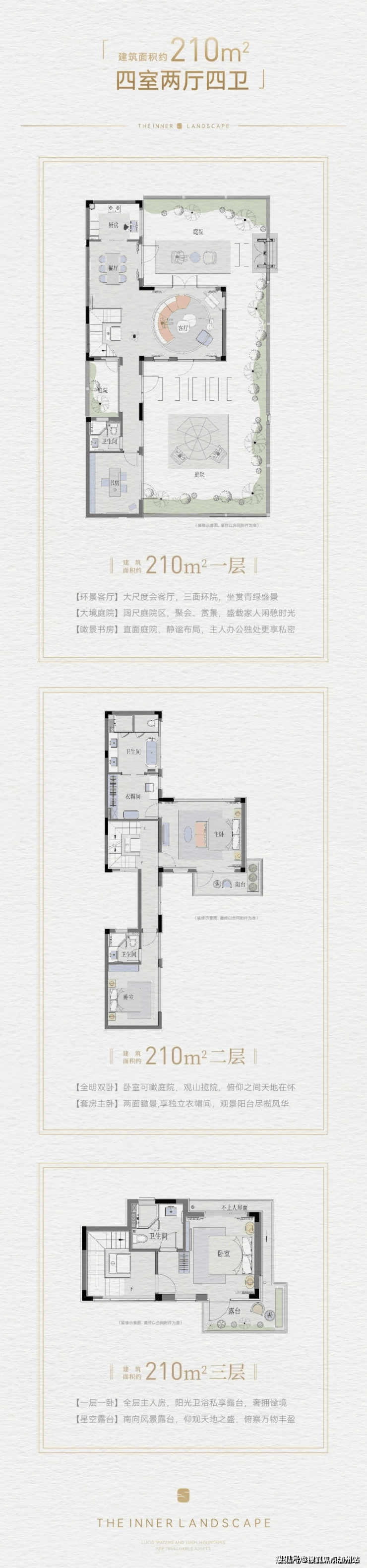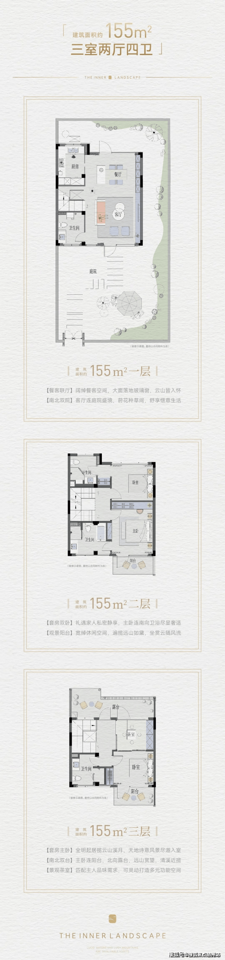 “生活的终极状态应该是回归自然,建筑亦是自然的组成。”所以,当溪山云庐实景示范区呈现时,建筑仿若生长在山水之中,山水中有庭院,庭院中有风景,让人赞叹连连。