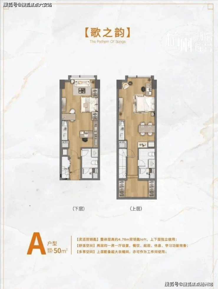 产品设计的难点在于,当前公寓产品同质化严重,投资和自住性产品力都不足。针对以上痛点,产品设计上做到了面积50㎡左右,层高4.78m的双钥匙户型。户型布置兼顾了青年刚需自住的产品诉求以及投资灵活多变的考量,达到了舒适人居品质和现代生产方式平衡的目的。