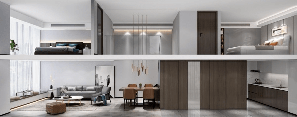 我们来了解一下这个公寓的设计风格。☎ 400-811-3125「营销中心」同进韵动城公寓采用4.78米层高的双钥匙+loft设计,这种设计不仅使得公寓的空间利用率更高,同时也赋予了住户更多的创意和发挥空间。此外,这个项目的装修标准也非常吸引人,精装交付的同时还赠送软装和电器,大大节省了住户的入住成本和时间成本。