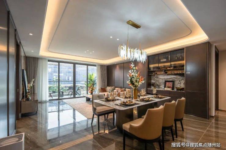 建面约310㎡的边套,首层南向横厅面宽就达到了约6.9米,厨房面宽约5.5米,可以阔绰地分出中西厨;