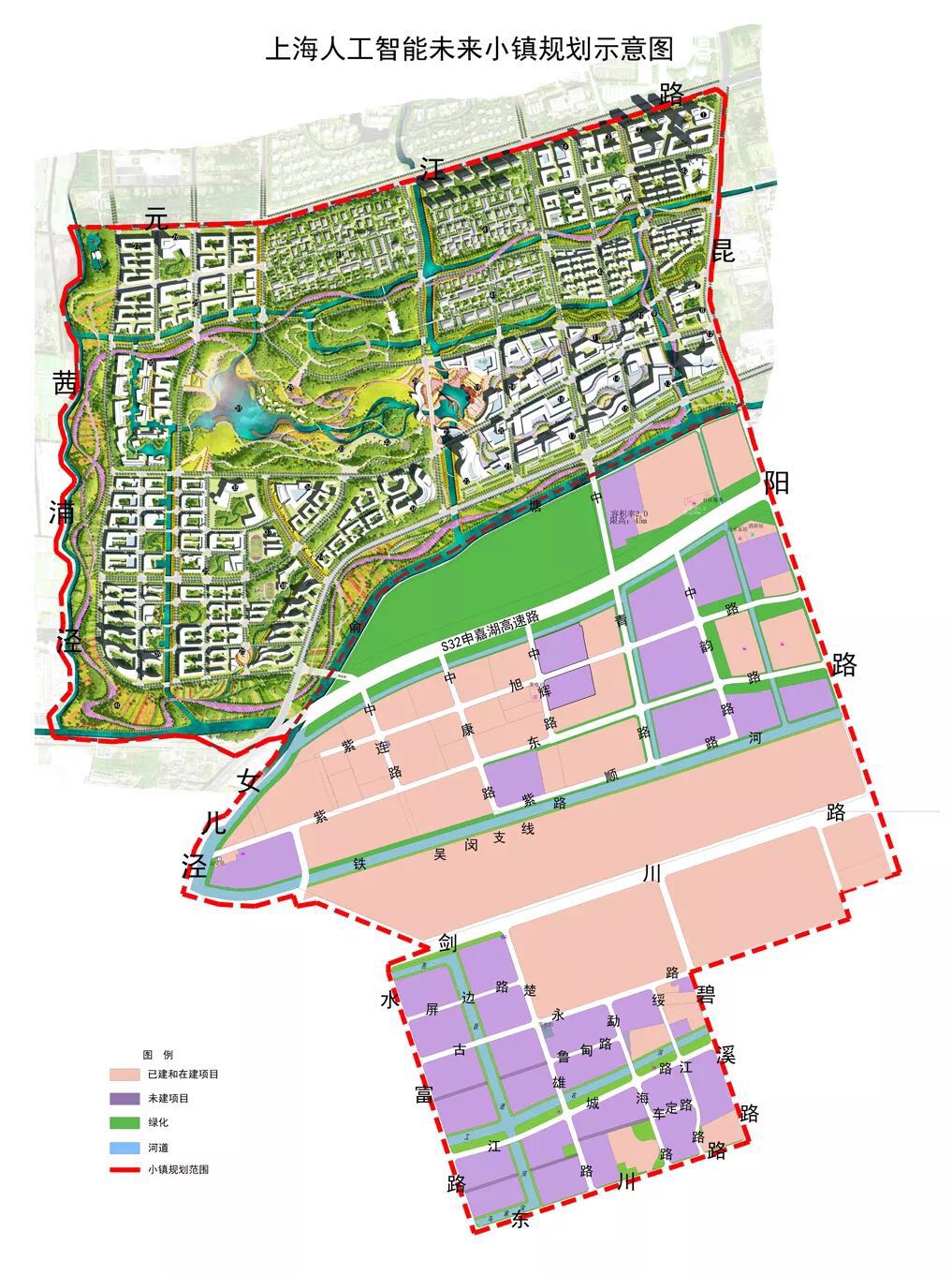 上海人工智能未来小镇正式落定马桥!紧邻龙湖玖悦项目西部,占地约15.4平方公里,以中部的北松公路为界,分为北部4.9平方公里的应用示范区(包括住宅、市政、医疗、商办、基础教育服务、福利、教育科研等用地)和南部5.5平方公里的产业园区。