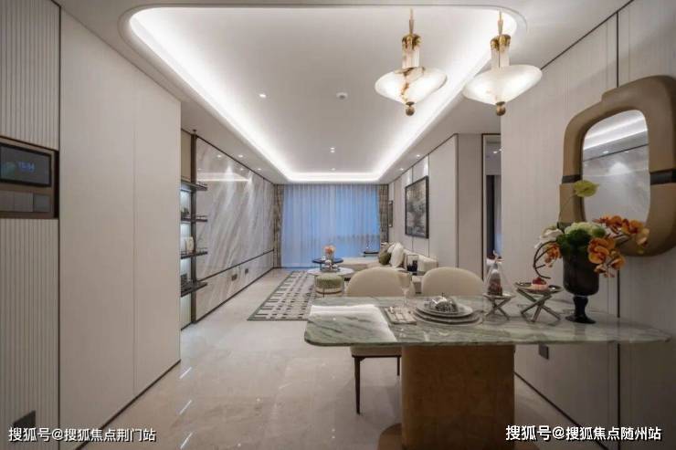 还有各种高级材料的运用,如维多利亚白石材、白玫瑰石材、地面拼花石材、土耳其雪花白石材、宝格丽黑石材、绿野仙踪岩板、贝母漆、皮革硬包等。
