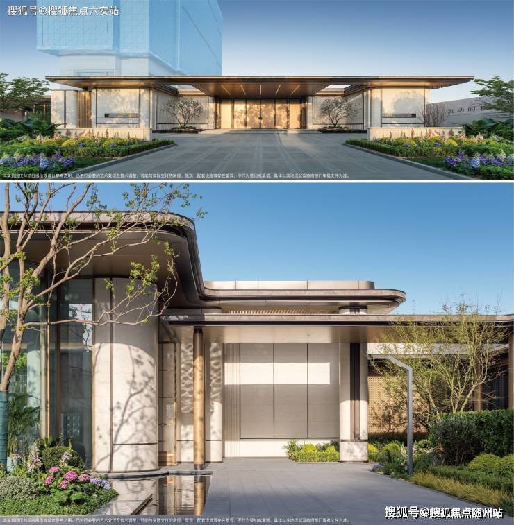 项目外立面汲取现代轻奢法式的白金美学灵感,采用极度对称、流动弧线、白金配色、金镂技艺等手法,定制约52米白金美学封面门庭,营造归家如入星级酒店的尊崇仪式感。