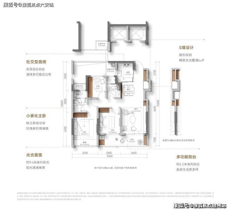 【光合面宽】约9.4米南向采光,阳光洒满角落