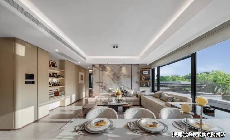引水入园,打造“两轴·一心·多模块”,营造一步一景的七重松弛之境,包括白金厅归家大堂、水潺院阳光水院、悠澜池社交泳池(约320㎡)、漫林间长者花园、真趣岛儿童花园、聚能场户外健身和春知谷春知学堂。