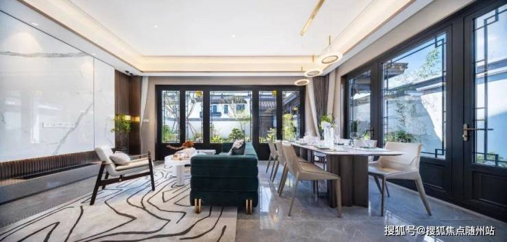 打造移步换景的江南园林雅境,呈现“堂、巷、院、宅”四进式礼序院落。,将千年东方礼序融于一院。结合框景、对景、漏景等丰富的造景设计,营造“移步换景、如在画中”之感,汇集杭州桃李春风、安吉天使小镇等蓝城经典中式合院营造经验之大成,专为当代名人雅士打造有天有地有花园的江南院落生活。