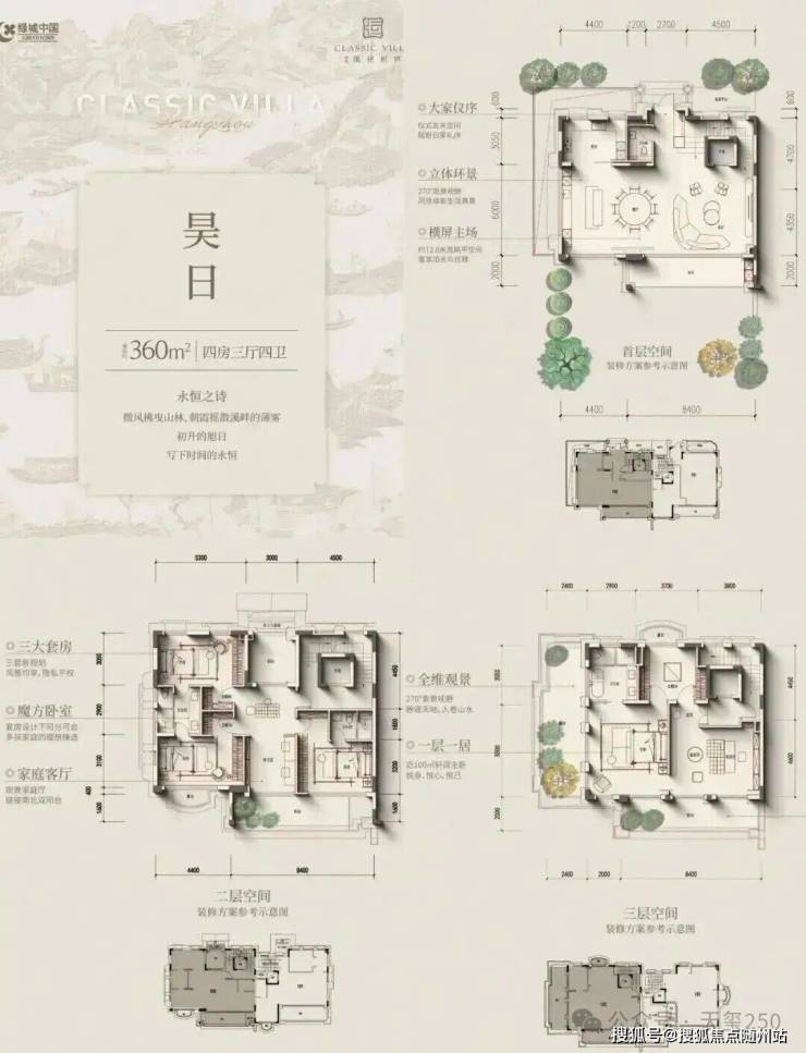 建筑面积约235~300㎡四层庐系叠墅,延续序列经典设计语言,围绕台地墅境、立体环院、层层厅堂、尺度拓展、智慧恒居的全维精进,展呈轻盈当代的庐系表达。