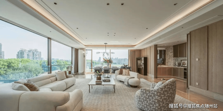 无背景墙客厅,灵活切换家庭聚会、艺术展示,空间不浪费。