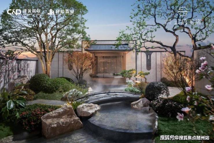 在园林打造上,以《溪山行旅图》为造园蓝本引良渚溪涧地貌,展卷「游园五境」立体山水画卷,更将约2700m²下沉庭院会所巧妙嵌入,兑现一座可赏、可游、可憩的东方山水画境。