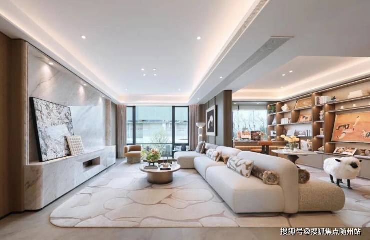 客厅背景墙的吊柜与储物格,展示柜的灯带与玻璃门,为收藏的Labubu提供了最佳舞台。这种“情绪收纳”的逻辑,让每一件物品都找到归属,也让生活回归纯粹。