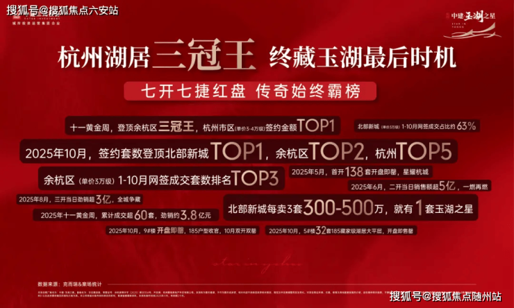 如果说“领誉”是品质的背书,那么“霸榜”就是市场最直接的投票。2025年,中建·玉湖之星将“热销”刻入项目基因,一整年的持续火爆,成就杭州楼市的“玉湖现象”。