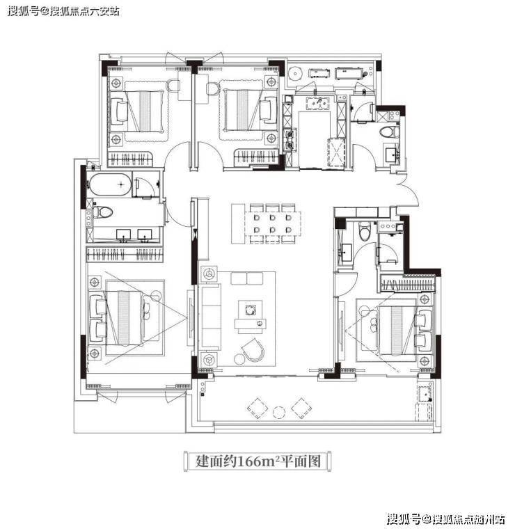 4房2厅3卫的166㎡户型,进门用功能丰富的玄关遮掩室内,其后你会在室内感受到少有的豁然开朗。