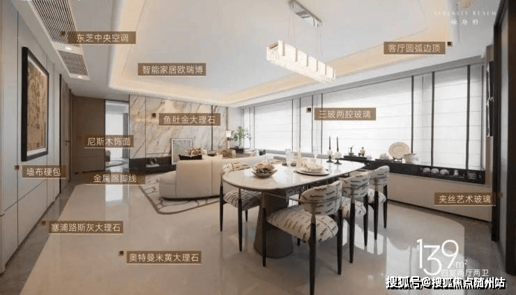 你看,餐客厅墙面选用天然尼斯木饰面。全屋共运用5种不同石材,如奥特曼米黄、塞浦路斯灰、意大利进口鱼肚金等。主卫台面为皇家白玉,公卫则选用白月光。售楼热线:☎ 400 832 8823「售楼处」☎〢🔻已认证〢◆🔻