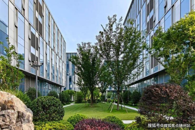 区内通过多元景观设计与精致的布局,嵌入口袋公园、慢行步道、空中花园、下沉式广场等,有着一步一景的独特体验,形成办公休闲与生态融合的绿色空间。