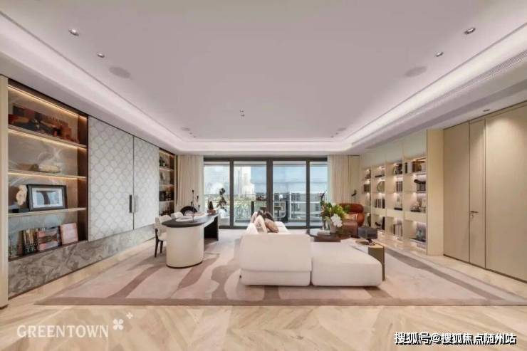 产品方面,叠墅组团采用金色立面,搭配大面积玻璃,结合流线型的曲面设计,使建筑充满灵动,规划建面约240-370㎡,餐客厅层高3.5米,卧室层高3.3米,阔绰尺度,彰显最贵。