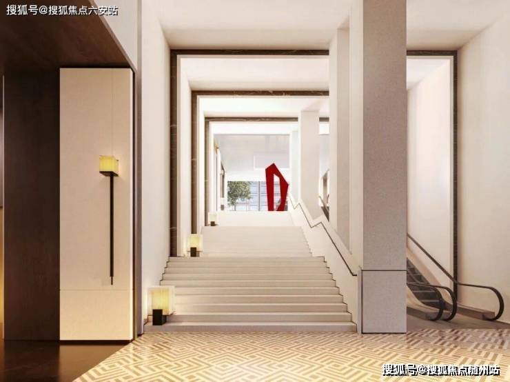 其次,沐芳洲整个项目向上举起了约3.8米,创造出一座漂浮在空中的生活岛屿。从地面G层上到平台架空层,可以选择自动扶梯或者台阶向上,乳白色如同通往圣殿般的台阶颇具艺术感。