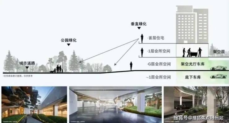 整盘建面约3.38万方,全部向上抬高约5.4米,叠加最高约5.25米的架空层,整体抬高了约11米,二楼房源的高度就已相当于普通小区的4-5层。
