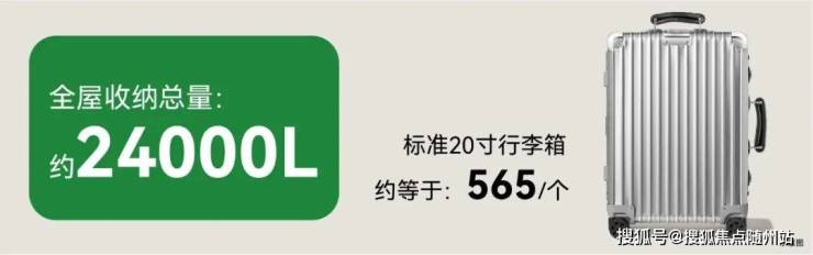 通过把空间“折叠”起来,从平面向立体、从柜体向墙面要空间,全屋收纳高达约24000升,相当于约565个20英寸标准登机箱的容积,将宁波百平户型的收纳功能做到了极致。
