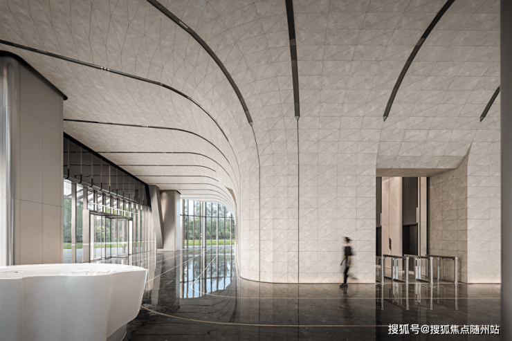这一次世茂智慧之门的交付,更向世界展示了杭州独树一帜的天际审美。例如,建筑立面以钱塘潮涌为灵感,以抽象的曲线展现出钱塘江的气韵,灵动的线条,配合超白玻璃幕墙,远远望去,呈现出流动性的动态变化。
