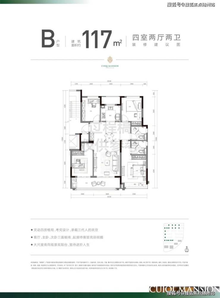 建面约128方采用了深受市场认可的经典的四叶草格局!这种户型的显著特点,就是消灭过道。客厅居于房子的中心,可以直接到达卧室、书房、厨房等各个空间。另外,4个功能间居于四角,对私密性的维护也和当下社会注重隐私的需求不谋而合,即使是孩子、长辈同住,也能有一个很好的家庭秩序。售楼处电话☎ 400 816 3856 ✅✅「已认证」