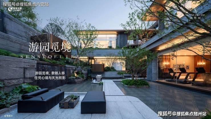 园林设计采用全风雨连廊,串联“两心六组团”景观园林,打造林下花园、台地花园、特色叠水等景观节点。小区最大亮点是打造了下沉式庭院与下沉式会所,位于生活馆与后场庭院之间,打造超7.5米的高差的台地花园。