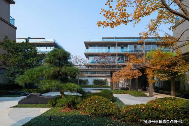 绿城把滨水叠墅像向日葵一样朝着湖的方向展开,借鉴了郭庄的造园手法,把西湖美景纳入园中。