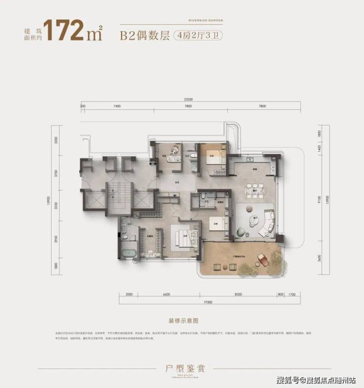 建面约172㎡(B2偶数层),以超越面积定义的格局,承载三代同堂的丰盛与从容,重新定义改善型生活的标准。约8.6米南向主卧套房,将睡眠区、衣帽间与卫浴融为一体,极大地拓宽了主卧的空间尺度。