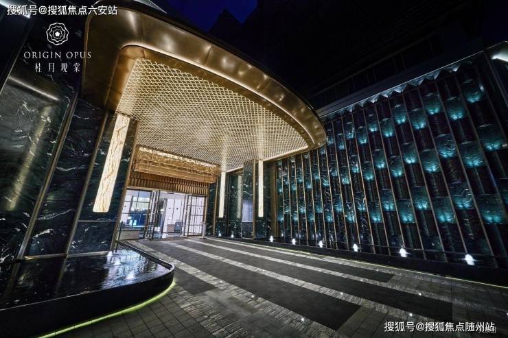 建筑由武林壹号、望庭原班团队操刀,外立面选用宝格丽酒店同款保加利亚进口维纳多奢石,搭配超白玻幕墙,形成“光幕立面”效果。园林以“四水归堂”为核,通过满月景墙、叠石水景等元素,再现江南桃源意境。归家动线融入东方对称美学,大堂采用嗅觉景观设计,分时段释放龙井茶香、檀木清香,营造沉浸式感官体验。