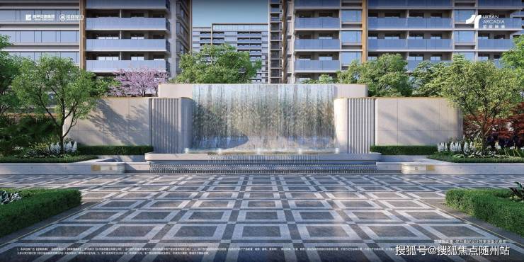 专属定制的精致奢石材料,迎宾水景,仪式感植物,传递惬意的轻松归家感。