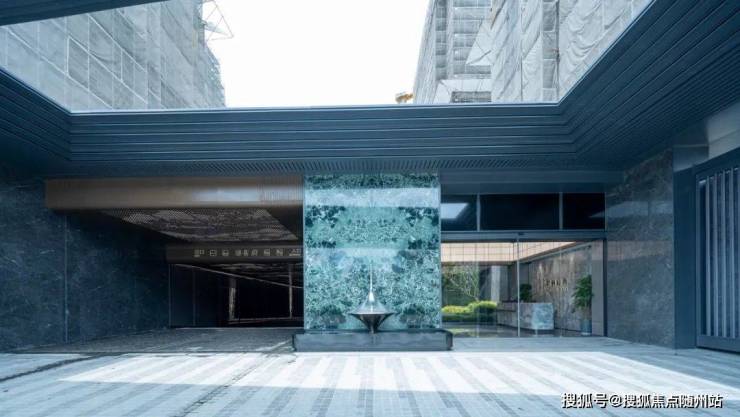 面宽超30米的大门大气磅礴,门头景墙所用的石材为产自安第斯山脉的Prada绿天然大理石,背后是工程团队达17次飞行实地考察的艰辛,是施工团队不计损耗对6块原石多番高精度裁切的用心。名贵树种搭配奢石景墙,一种高级感油然而生。