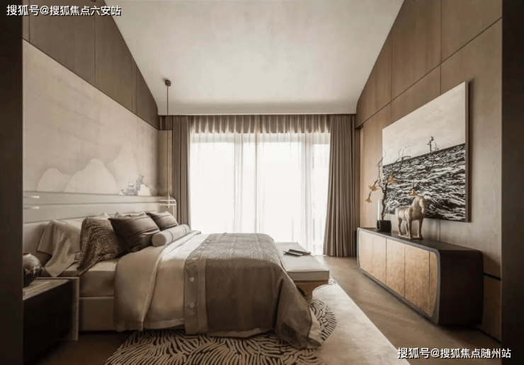 和纸亚克力顺应墙体向上折叠,几乎是艺术馆才会出现的美术装置,这些精雕细琢的动作就是大师设计对生活美学的尊重,而在开发者的把控之下,从室内功能场景到每个装修细节,所有团队都是一体化思考的,只为了交付后最完美的居住体感
