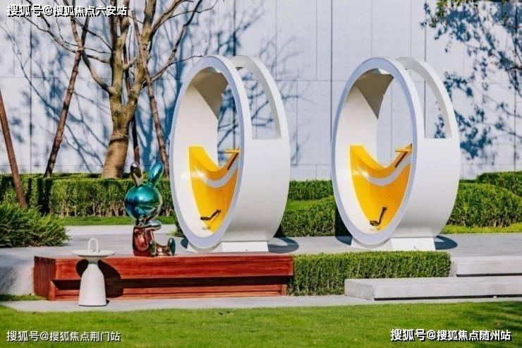 修剪成圆球状的灌木,这一排那一簇的,围合着一个四方形大草坪。四五株梅花,粉色杜鹃有序地点缀在童享体验区、健身活动区、林下会客区等 “全年龄”休闲互动区。