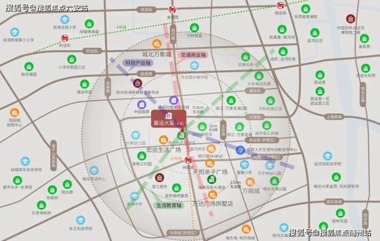 地理位置优越:位于杭州城北CBD核心区域,紧邻地铁4号线和10号线交汇站,交通便利。