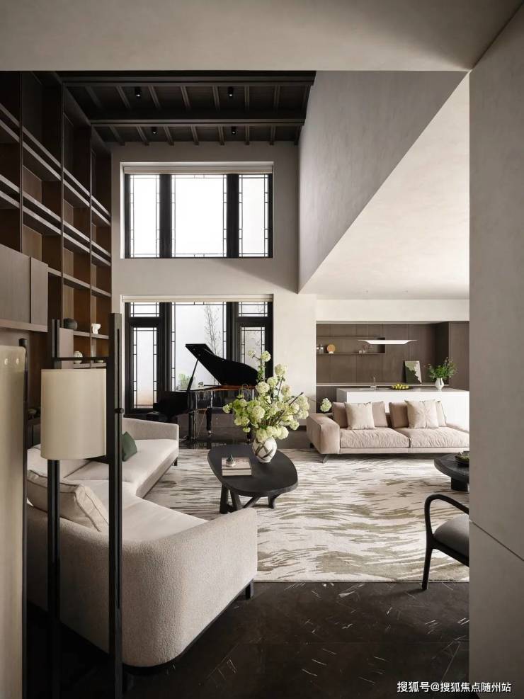 三层挑高天光中庭,引自然光入室,搭配270°全景落地窗,湖山风光无遮挡入画。