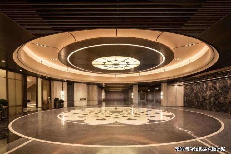 最具仪式感的应该是大门入口处:宽约35米、高约6.5米的寰宇云厅,如殿堂一般气势恢宏,两侧还有挪威蓝翡翠石材景墙对仗而立。拾级而上,是一片超130平的开阔光厅。