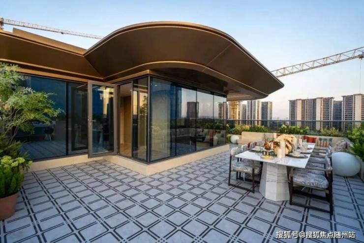 (天澜传序府建面约340方上叠样板房露台实景图)