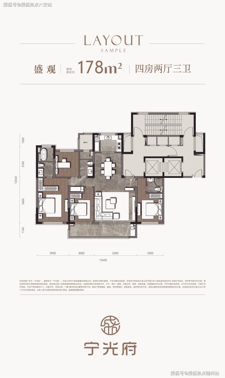 178㎡四房:15.4米南向面宽,8.2米景观阳台,奢享南向双套房,6米宽厅连接湖景视野。