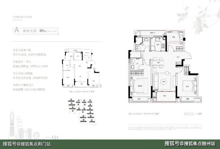 杭颂星澜府在户型的设计上更加游刃有余,主力的89方户型设计成了类四叶草的布局:动线合理、减少走廊的浪费、各卧室独立且私密。同时三开间朝南的设计,面宽达到了9.7米,主次卧均带有飘窗,采光充足,而且主卧为套房的布置,让生活更舒适。