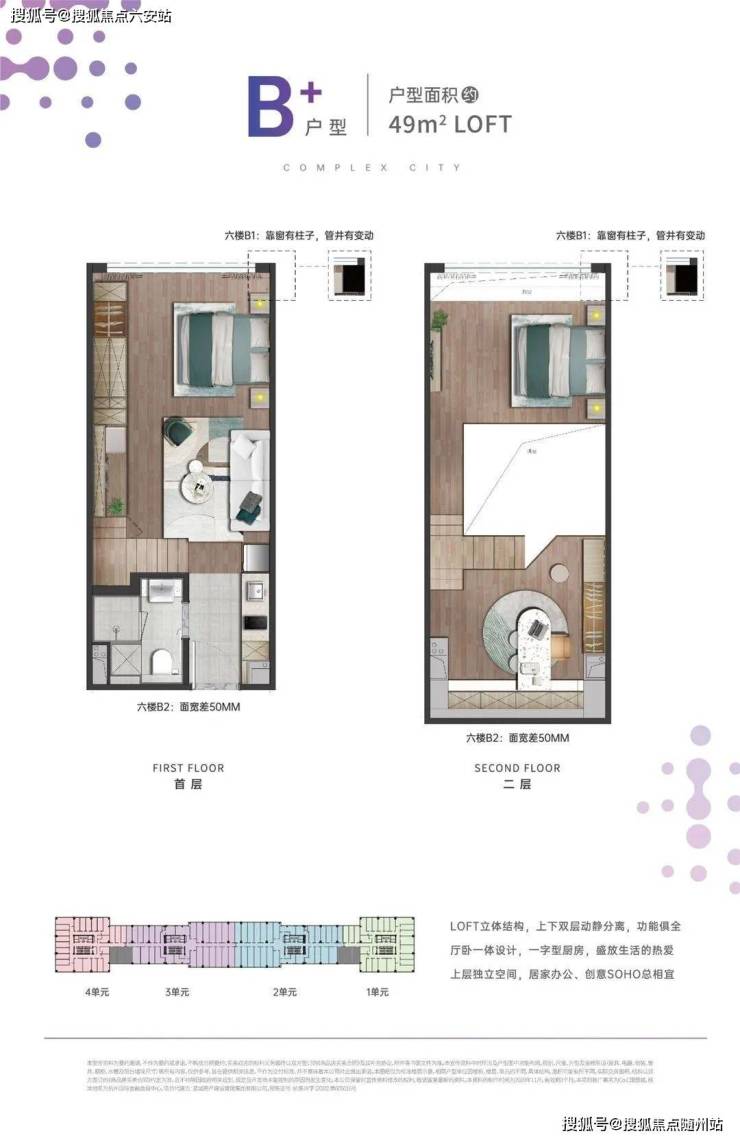 29-51㎡精装空间:平层层高3.3米,loft层高4.2米,买一层得两层,得房率超200%