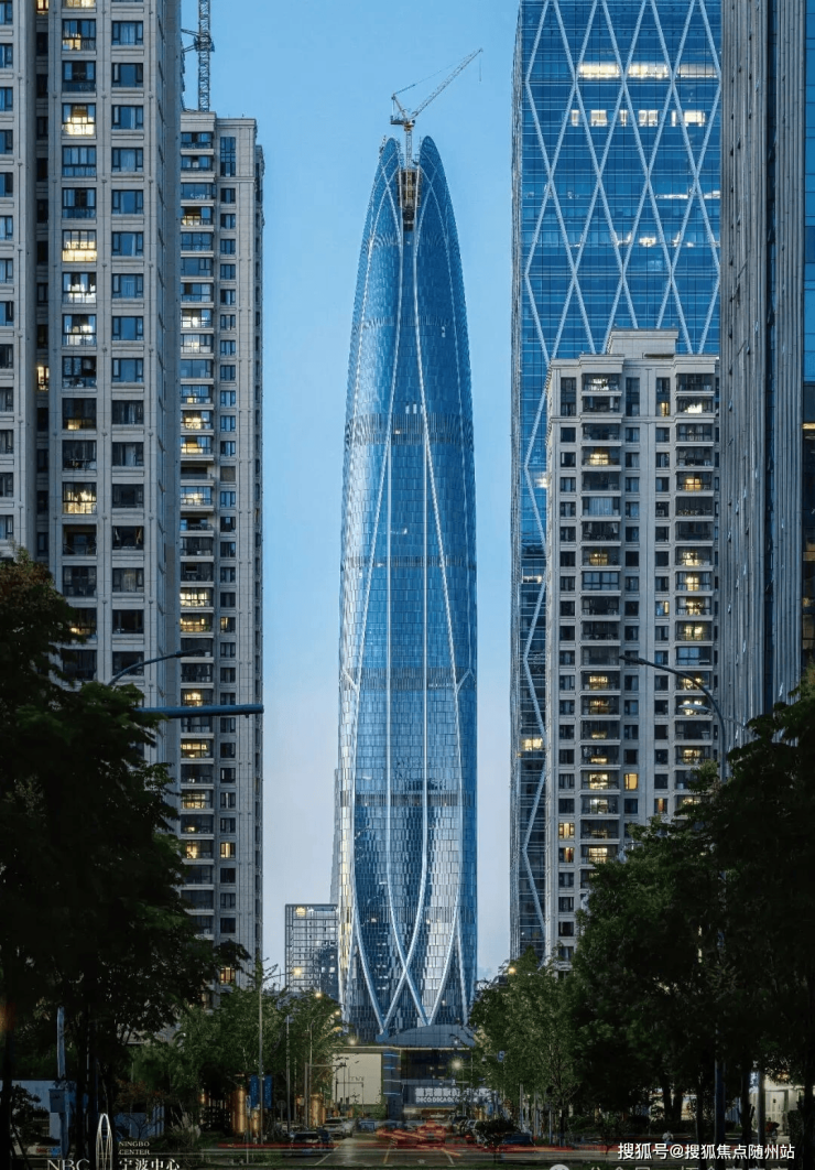 宁波中心大厦,是“ 浙江第一高楼”,位于宁波东部新城核心区,总建筑高度为409米,地下三层,地上80层,总建筑面积25万平方米。