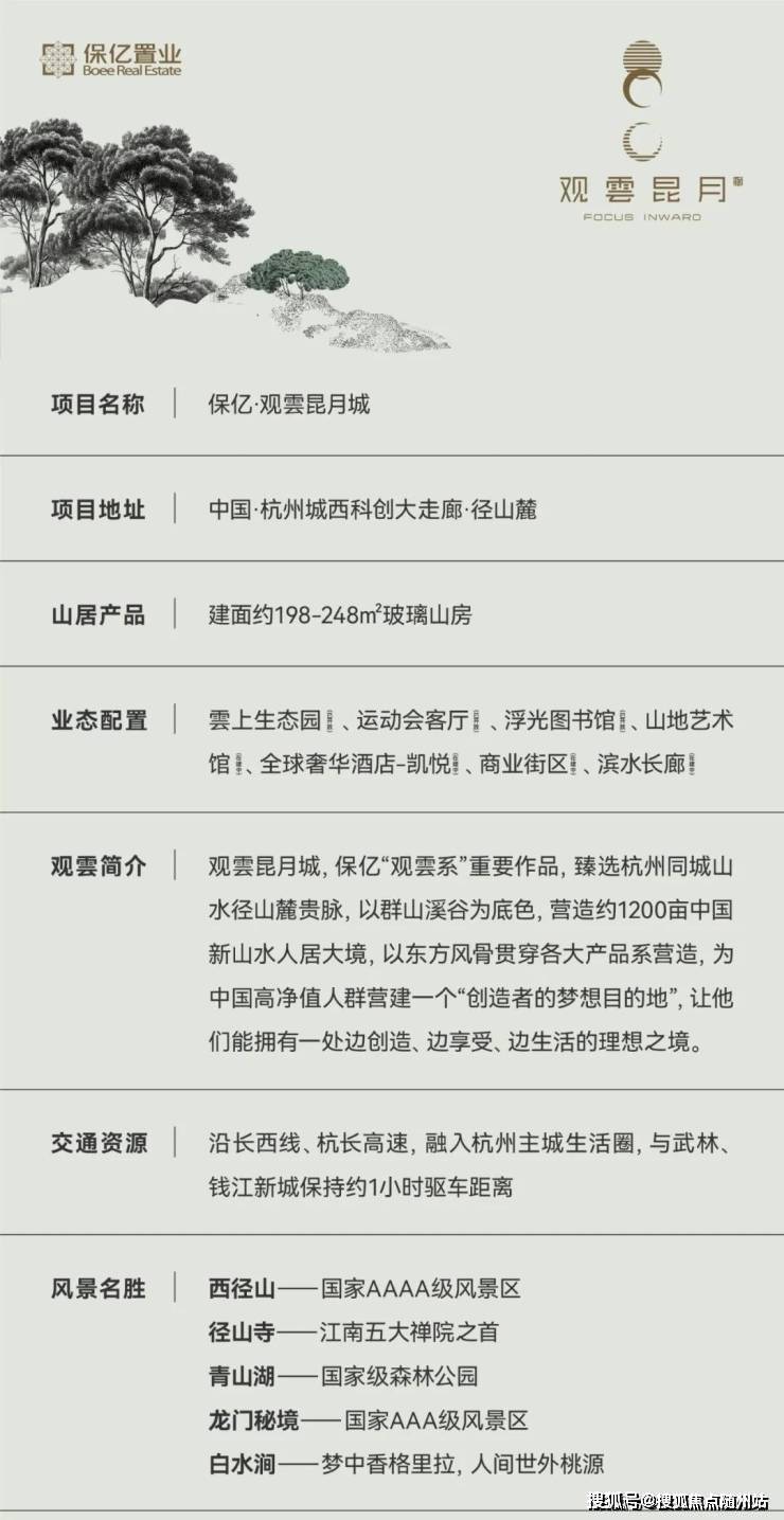 保亿·观雲昆月城正以“创造者的梦想目的地”之姿,重塑杭州山居生活的新标准。项目将东方美学意境与现代科技完美融合,在径山千年文脉之上,打造出一处兼具自然静谧与都市繁华的理想栖居。