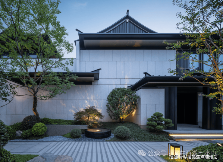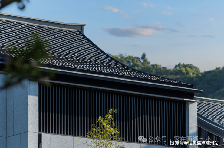 建筑(gad张微执笔):取法宋代郭熙“三远论”,以石材、玻璃、铝板精妙搭配,融入正脊、戗脊、博风板、悬鱼、鱼鳞瓦等宋式经典元素,呈现平远雅致、虚实相生的经典立面。