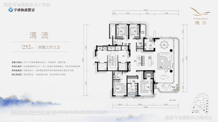 建面约232㎡滨水东首:270°环幕视野,18.6米南向开间,赠送60㎡私属露台,层高3.3米,私享东钱湖全景。