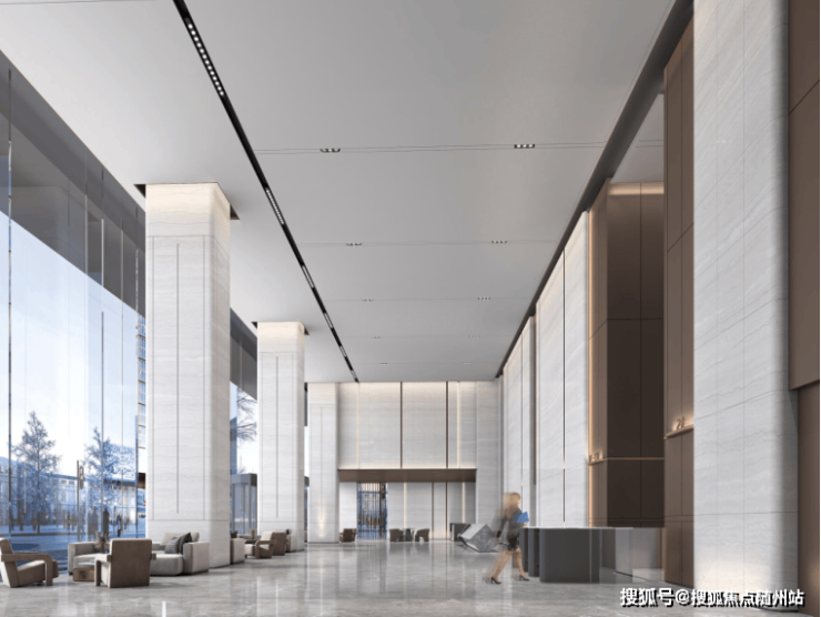 建筑美学上,项目由全球大师执笔,外立面采用玻璃幕墙与铝板交织,配合270°全景落地窗,引入高铁穿行景观,项目已获得LEED金级预认证。约9.6米双层挑高精装大堂,融合南宋美学与现代科技,选用名贵石材与考究材质,打造企业形象的“第一名片”。
