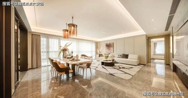 最后再来看餐客厅,直接把阳台纳入室内,变成客厅的一部分。你仔细看,它不是简单的封阳台,传统的封阳台和客厅是有门的,但这个没有,是直接融入。所以,它139平的餐客厅,面积达到了40平,面宽6.8米,这个空间尺度就真的很舒服呀。