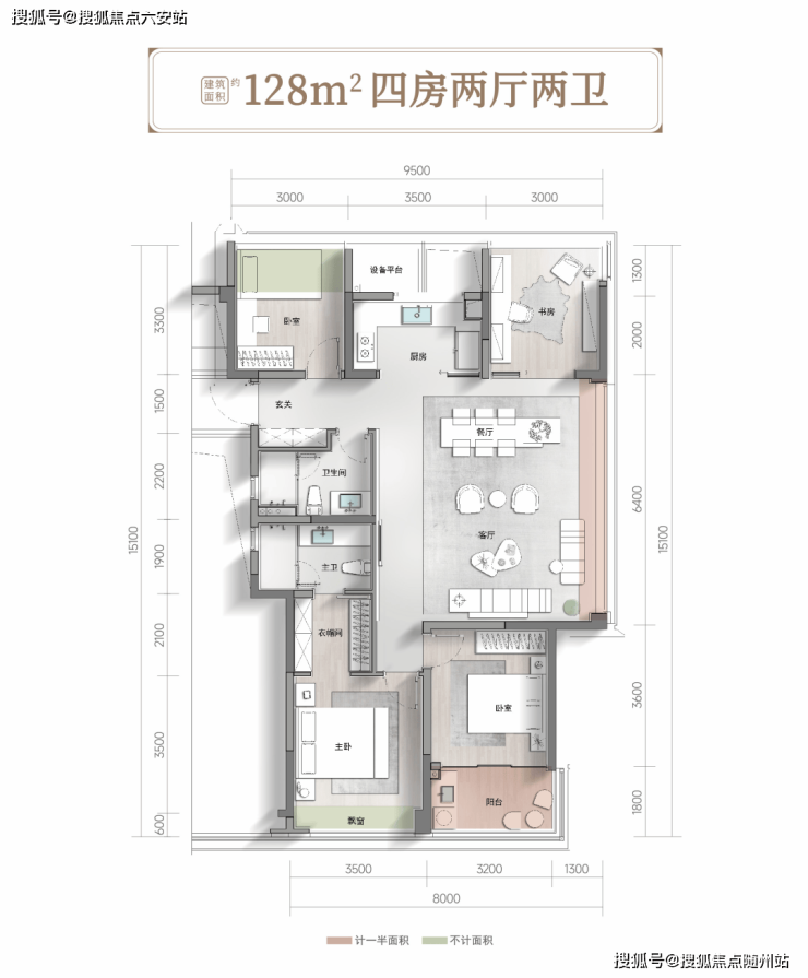 建面约128㎡西边套大四房,限量16席,将同面积段的尺度感推向极致。边厅设计,约6.4米的全落地玻璃,让家从清晨起就阳光满溢,空间通透而明亮,生活时刻充满朝气。