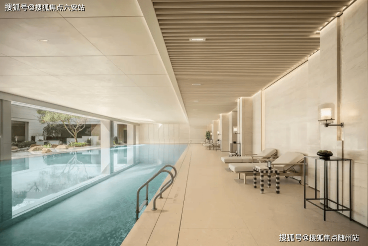 比如恒温泳池,与下沉式庭院只隔了一面大玻璃,看出去就是庭院里的水景。这样的恒温泳池已经不是豪宅的专属了,单价三四万的璟逸,也可以拥有。